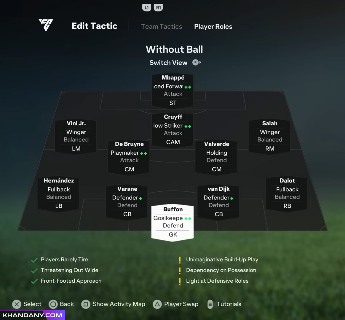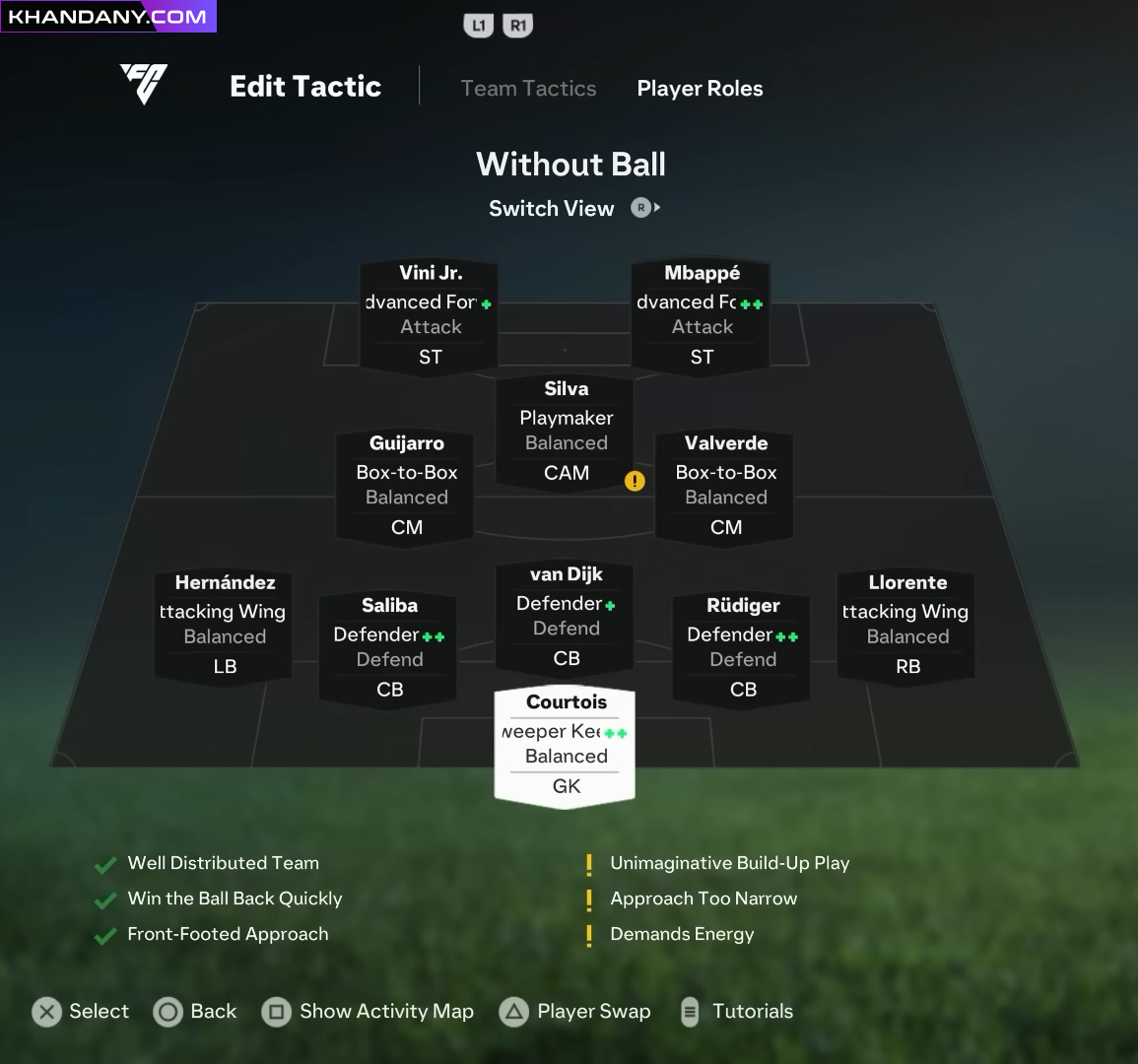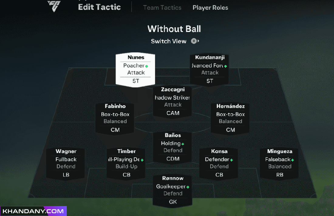 نقشی که باید برای بازیکنان خود در این ترکیب دفاعی تعیین کنید نیز به شکل زیر است :