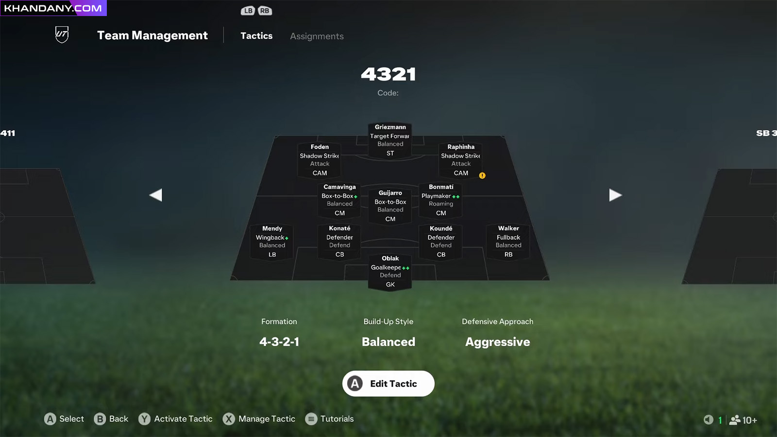 خط میانی شما نیز به شرط داشتن حداقل دو هافبک باکیفیت نسبتا قوی خواهد بود اگرچه در خط حمله ضعف خواهید داشت، بنابراین لازمه چیدن این ترکیب و تاکتیک های مرتبط با آن داشتن یک مهاجم ششدانگ و کاربلد است که در جریان بازی نیز حضور فعال داشته باشد.